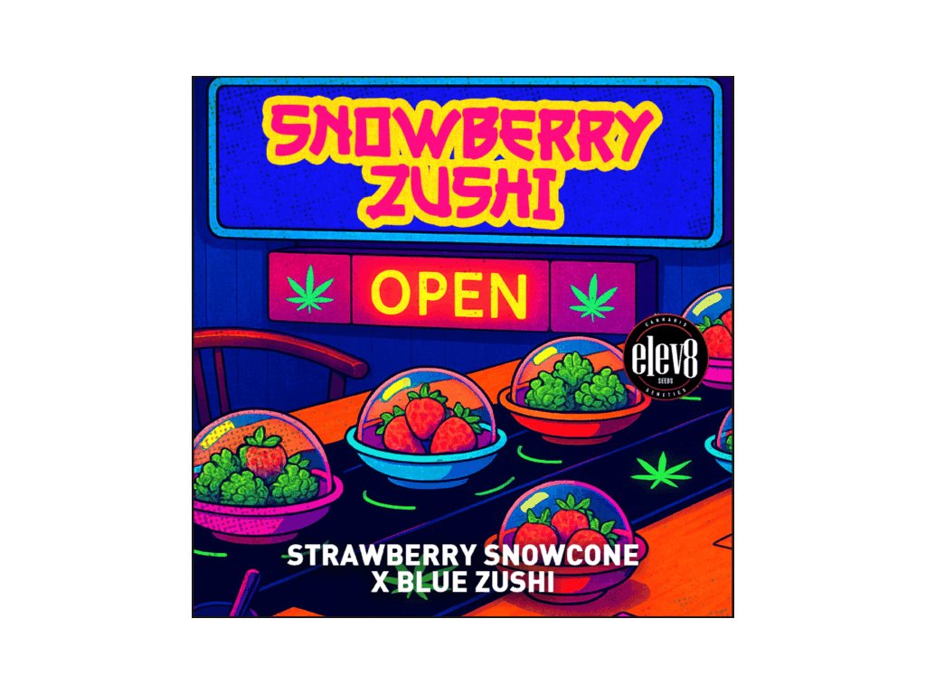 Charakteristika: Chladivý výbuch jahodového sirupu, krémového Z a ledového funk. Snowberry Zushi přináší sladké červené bobule navrstvené na mrazivých, pryskyřicí naplněných palicích, které se třpytí jako sníh. Hladký, po dezertu připomínající kouř s povzbudivým a euforickým efektem — ideální pro denní potěšení nebo pro milovníky chuťových zážitků.